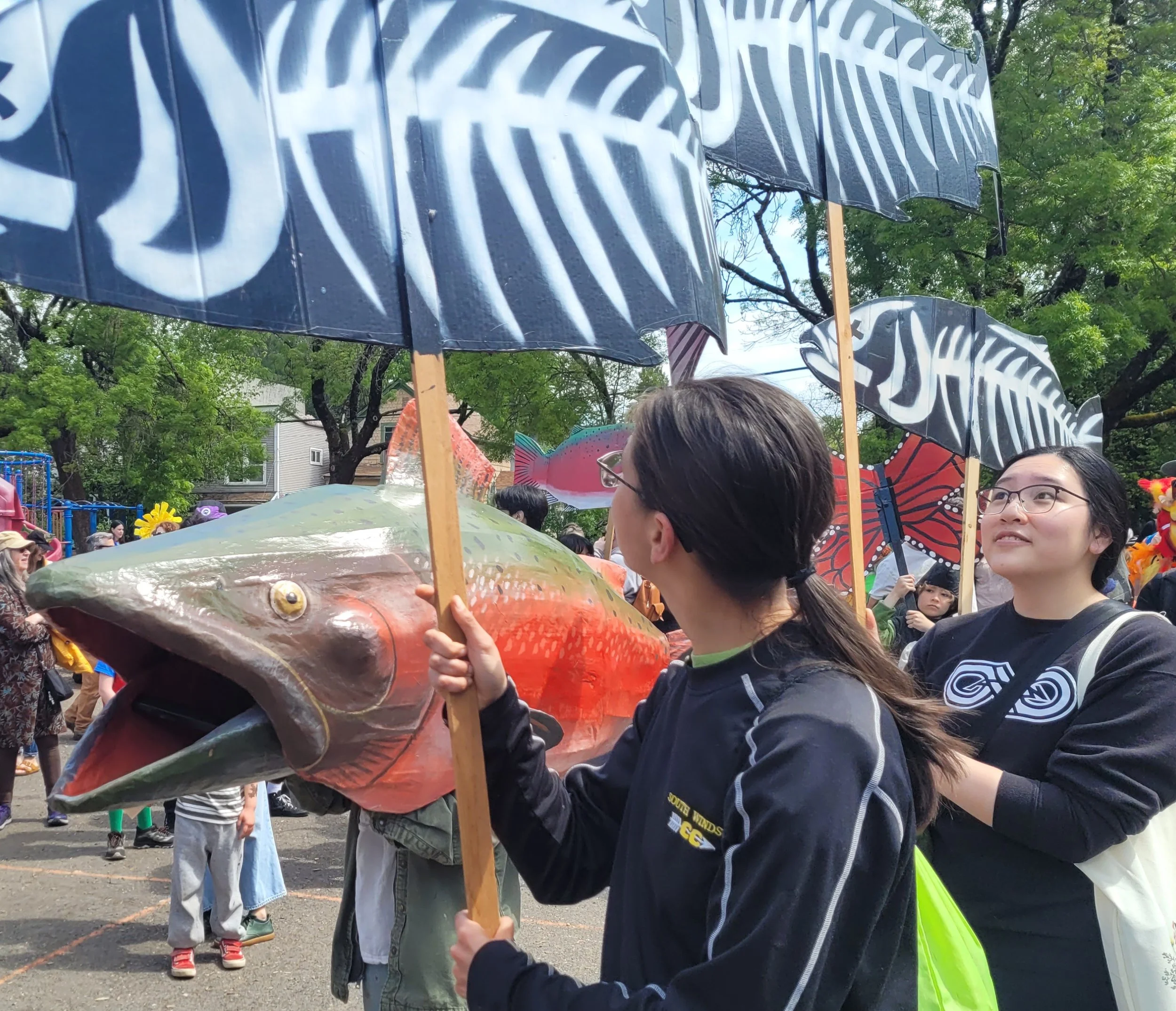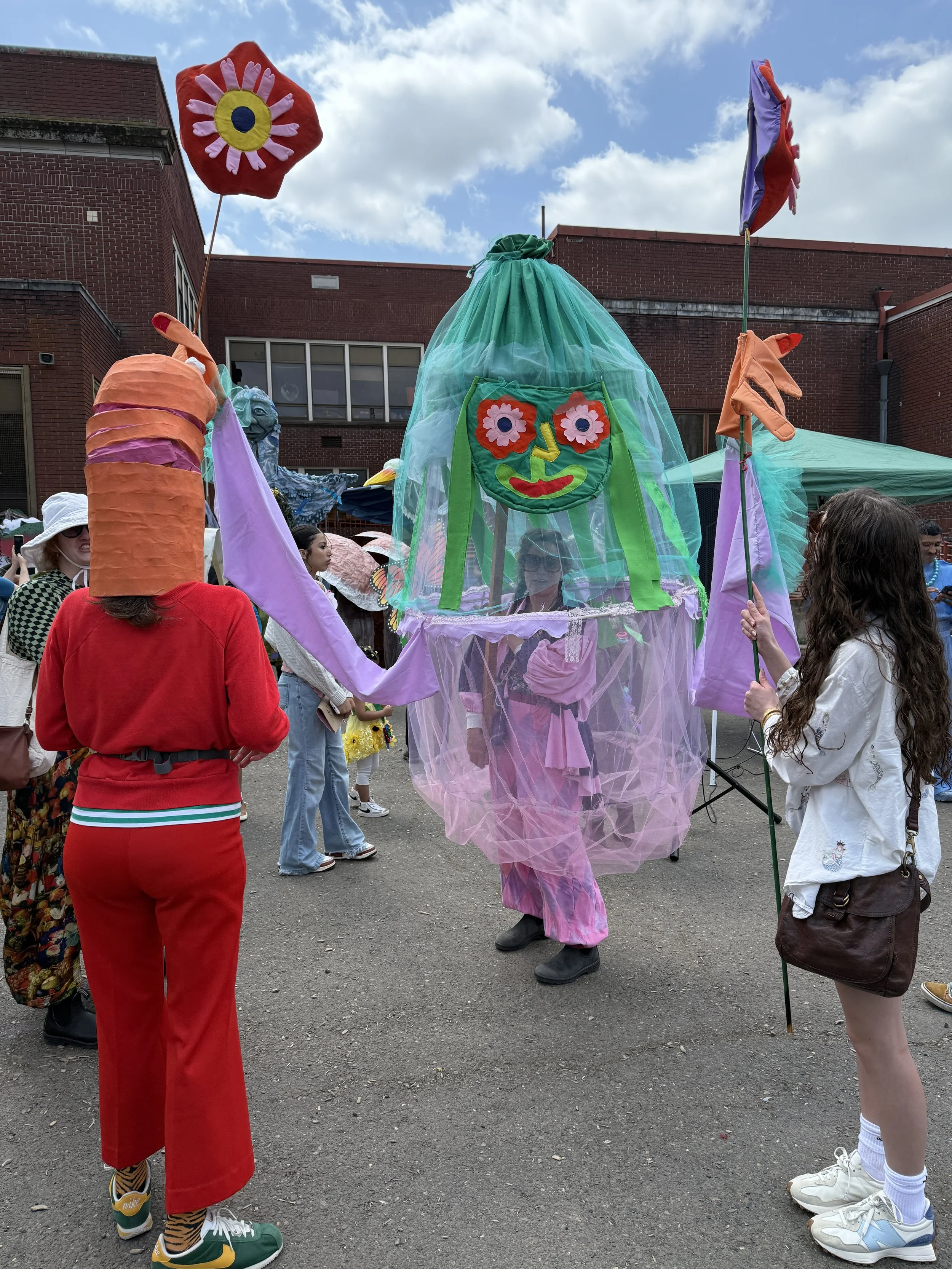 Costumes, puppets, protest signs, instruments, bubbles, strollers, dogs, trash grabbers, and buckets are just some ideas of what you can bring to march in the parade! All are welcome!